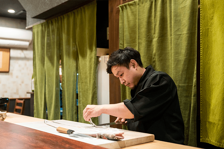 お店は祇園でお寿司屋さんを営んでおられたお父様の影響から料理人の道に入られた、店主の中村悠太郎さんご自身で設計された店内はシンプルながら上品で清潔感が感じられます。